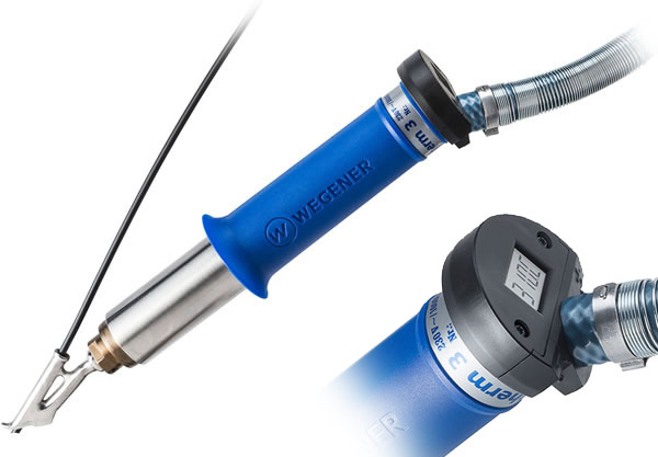 - Integrated temperature control, infinitely variable adjustment of the welding temperature via push button, display of